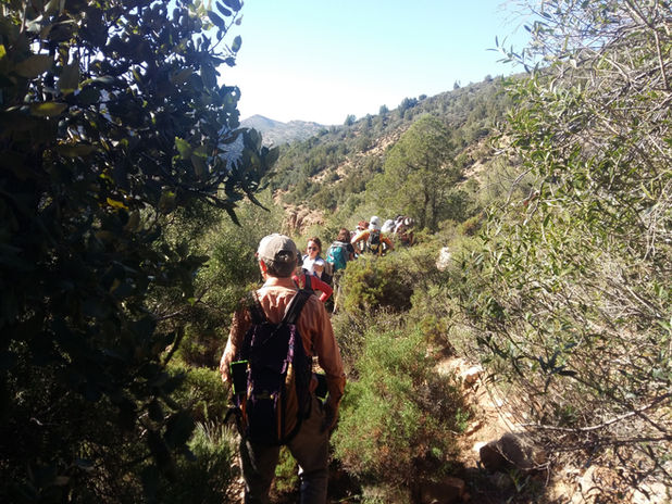 Petite montée Traversée d’une forêt de genévrier d'où la vue est surprenante. Piste en balcon entre les amandiers. Traversée des Villages Berbères. Descente en direction du la mer, belle descente. nous pouvons admirer le coucher de soleil sur l'océan